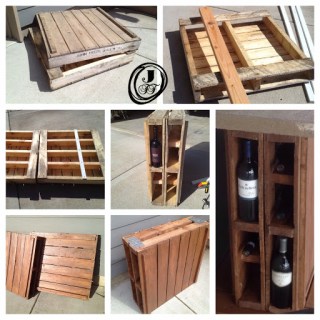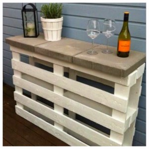 I didn’t find specific instructions but it seemed pretty self explanatory. I cleaned two small wood pallets, added a 2×4 for both additional support and extra shelving, stained them, used metal plates and screws to secure them together, and landscaping cement to adhere concrete pavers to the top.
