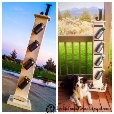 Then I filled the jars with a gravel base, potting soil and seeded them with herbs. I added chalkboard tags that can be marked with which herb is growing where and then altered if I replant with something different. When the temps drop, I will bring it in for the winter. I have 8 jars of tiny green sprouts! It will be interesting to see how they grow.